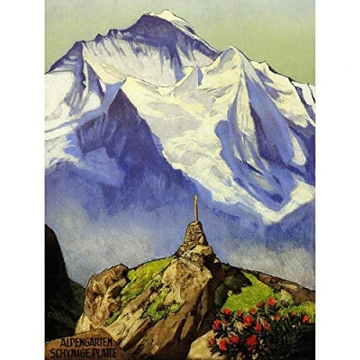 Wee Blue Coo Painting Landscape Alpine Scene Mountain Schynige Platte Swiss Art Print Poster Wall Decor 12X16 Inch