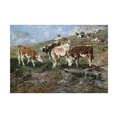 Wee Blue Coo Painting Landscape Animals Braith Young Cattle Tyrol Wall Art Print