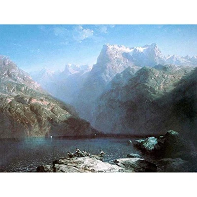 Wee Blue Coo Painting Landscape Calame Lake Lucerne Swiss Alps Art Print Poster Wall Decor 12X16 Inch