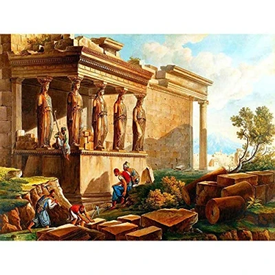 Wee Blue Coo Painting Landscape Cassas Porch Caryatids Erechtheion Art Print Poster Wall Decor 12X16 Inch