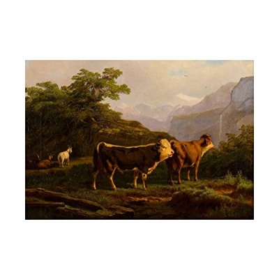 Wee Blue Coo Painting Landscape Pastoral Burckhardt Cows Goats Alps Wall Art Print