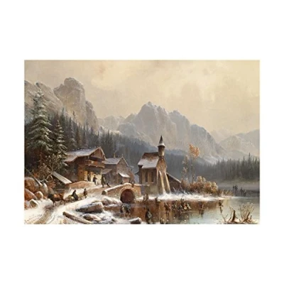 Wee Blue Coo Painting Landscape Rural Doll Winter Fun Wall Art Print