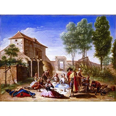 Wee Blue Coo Painting Landscape Rural Study Bayeu Picnicking Wall Art Print