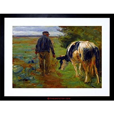 Wee Blue Coo Painting Landscape Rural Study Liebermann Farmer Cow Framed Wall Art Print