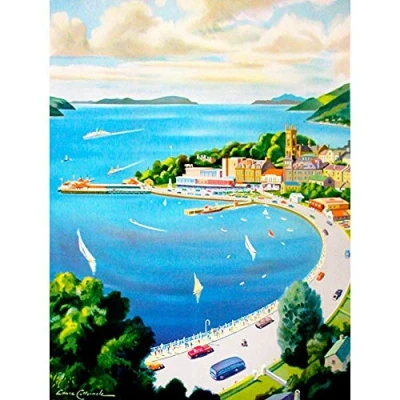 Wee Blue Coo Painting Landscape Soft Coast Village Port Boat Sea View Art Print Poster Wall Decor 12X16 Inch