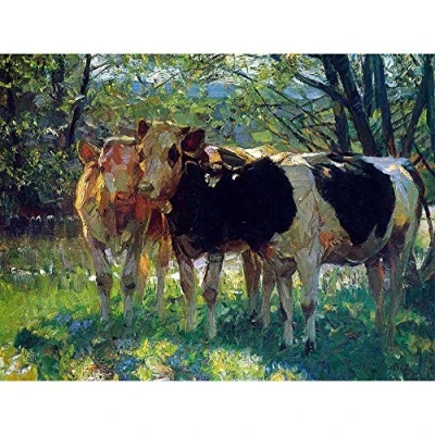 Wee Blue Coo Painting Landscape Study Animal Von Zugel Three Cows Art Print Poster Wall Decor 12X16 Inch