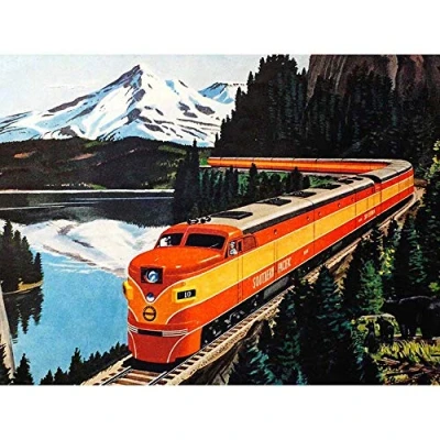 Wee Blue Coo Painting Landscape Travel Train Rail Southern Pacific Mountain Art Print Poster Wall Decor 12X16 Inch