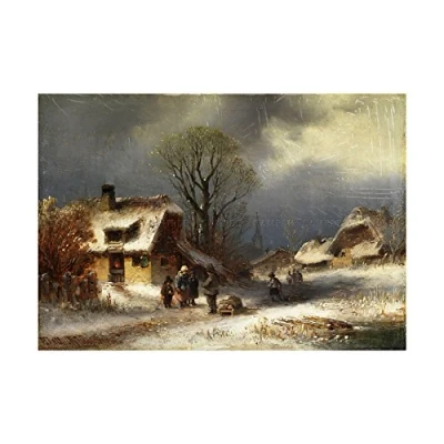 Wee Blue Coo Painting Landscape Urban Doll Wintry Village Scene Wall Art Print