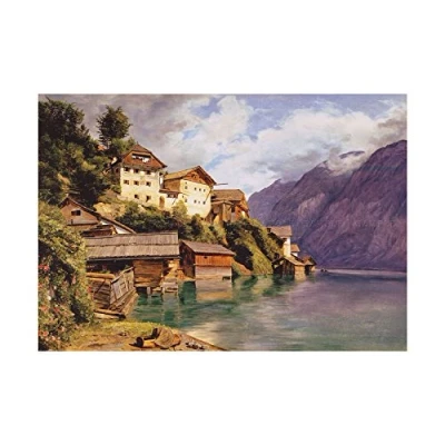 Wee Blue Coo Painting Landscape Urban Waldmuller Hallstatt Village Wall Art Print