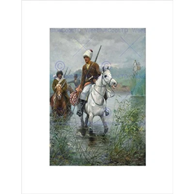 Wee Blue Coo Painting Landscape Ventsenostsev Cossack Horsemen Wall Art Print