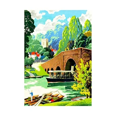 Wee Blue Coo Painting Landscape Village Scene River Thames Boat Picture Wall Art Print