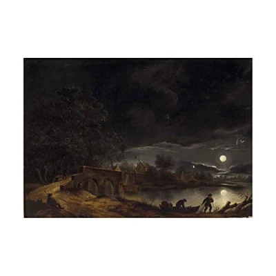 Wee Blue Coo Painting Landscape Vollmer Full Moon Over Village Wall Art Print