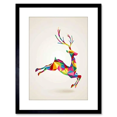 Wee Blue Coo Painting Leaping Running Deer Polygon Framed Wall Art Print