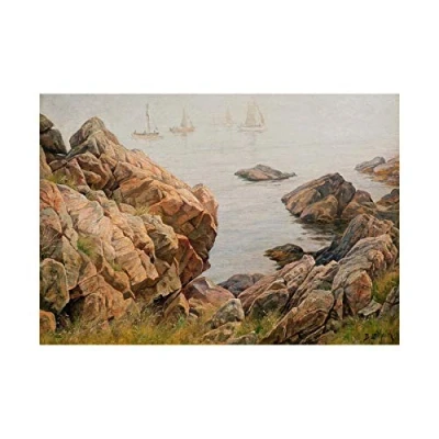 Wee Blue Coo Painting Lindholm Fishermen In Morning Fog Wall Art Print