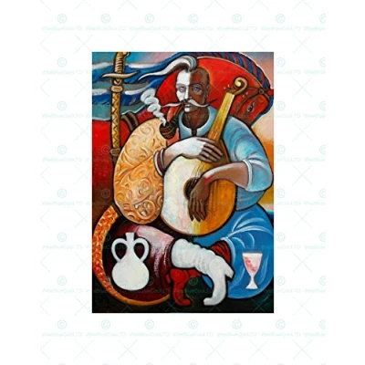 Wee Blue Coo Painting Lute Player Picture Wall Art Print