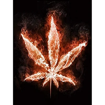 Wee Blue Coo Painting Marijuana Leaf Flames Fire Weed Cool Bright Large Art Print Poster Wall Decor 18X24 Inch