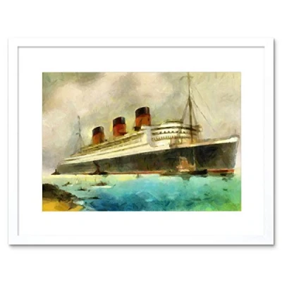 Wee Blue Coo Painting Maritime Rms Queen Mary Liner Cruise Ship Framed Wall Art Print