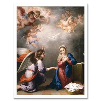 Wee Blue Coo Painting Mary Annunciation Cherub Angel Religion Christian Art Print Framed Poster Wall Decor 12X16 Inch