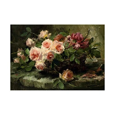 Wee Blue Coo Painting Mortelmans Pink Roses In A Basket 12x16 Wall Art Print
