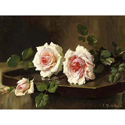Wee Blue Coo Painting Mortelmans Two Pink Prince Bulgaria Roses Art Print Poster Wall Decor 12X16 Inch