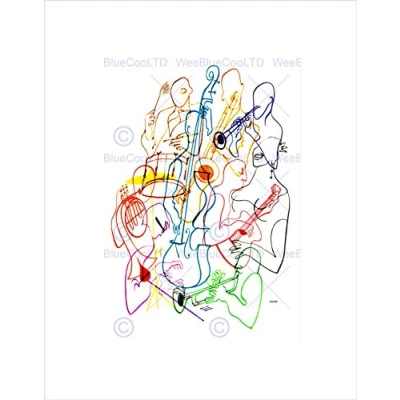 Wee Blue Coo Painting Music Musician Colour Cello Drum Wall Art Print
