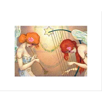 Wee Blue Coo PAINTING MUSICAL ANGEL NOUVEAU HARP BLACK FRAMED ART PRINT PICTURE B12X12464