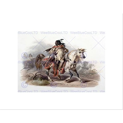Wee Blue Coo PAINTING NATIVE AMERICAN BODMER BLACKFOOT HORSEBACK FRAMED ART PRINT B12X3703