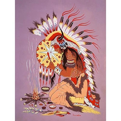 Wee Blue Coo Painting Native American Dian Shaman Fire Feather Spirit Art Print Poster Wall Decor 12X16 Inch