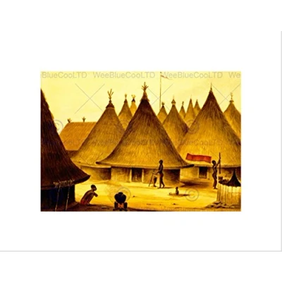 Wee Blue Coo PAINTING NATIVE VILLAGE HUT COOKING STRAW HOUSE AFRICA FRAMED PRINT B12X12465