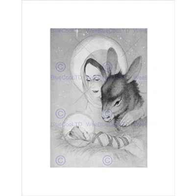 Wee Blue Coo Painting Nativity Black White Mary Jesus Donkey Wall Art Print