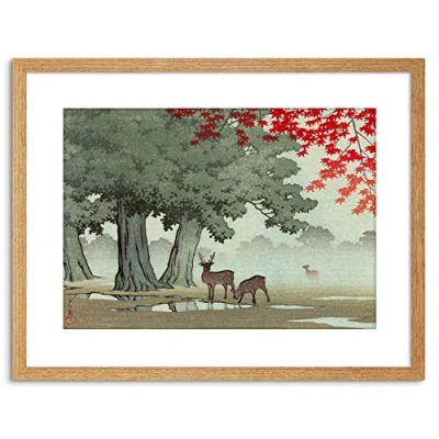 Wee Blue Coo PAINTING NATURE JAPAN TREE DEER KAWASE HASUI FRAMED PRINT F97X4229