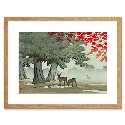 Wee Blue Coo Painting Nature Japan Tree Deer Kawase Hasui Framed Wall Art Print