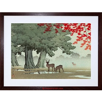 Wee Blue Coo Painting Nature Japan Tree Deer Kawase Hasui Framed Wall Art Print