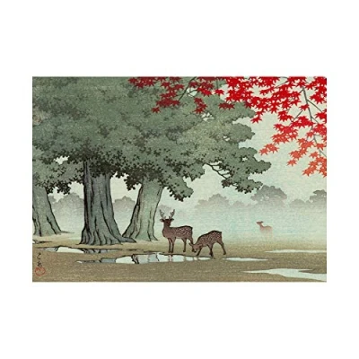 Wee Blue Coo Painting Nature Japan Tree Deer Kawase Hasui Wall Art Print