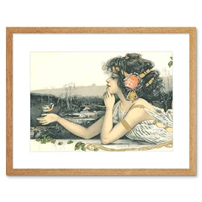 Wee Blue Coo Painting Nouveau Woman Bird Robin Spring Framed Wall Art Print