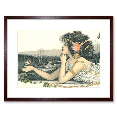 Wee Blue Coo Painting Nouveau Woman Bird Robin Spring Framed Wall Art Print