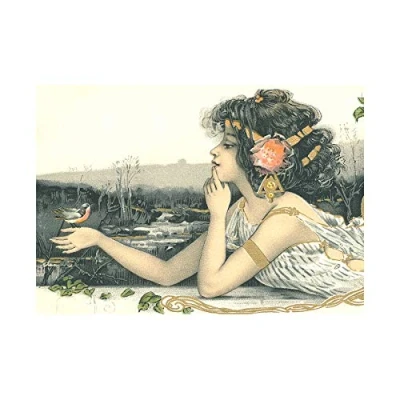 Wee Blue Coo Painting Nouveau Woman Bird Robin Spring Wall Art Print