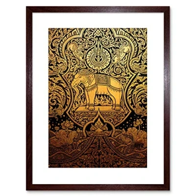 Wee Blue Coo Painting Ornate Abstract Thailand Elephant Framed Wall Art Print