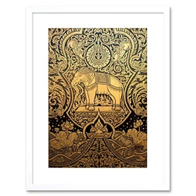 Wee Blue Coo Painting Ornate Eastern Indian Elephant Pattern Framed Wall Art Print