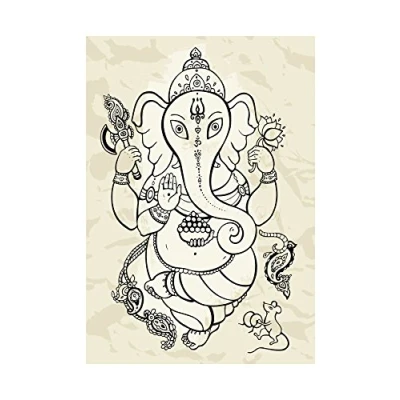 Wee Blue Coo Painting Ornate Outline Ganesh Hindi Elephant Wall Art Print