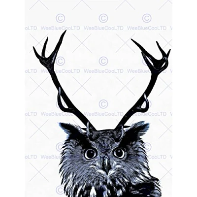 Wee Blue Coo Painting Photo Owl Deer Antlers Weird Bizarre Fun Wall Art Print