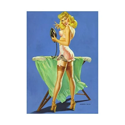 Wee Blue Coo Painting Pin up Girl Lingerie Ironing Board Iron Blonde Wall Art Print