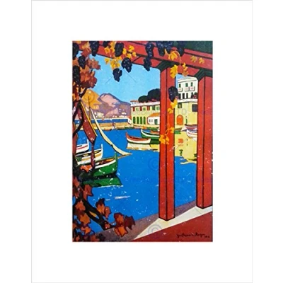 Wee Blue Coo Painting Port Harbour Cote D'azur France Sea Boat Wall Art Print