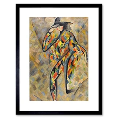 Wee Blue Coo PAINTING PORTRAIT ABSTRACT COLOURFUL HARLEQUIN BLACK FRAMED ART PRINT B12X7427