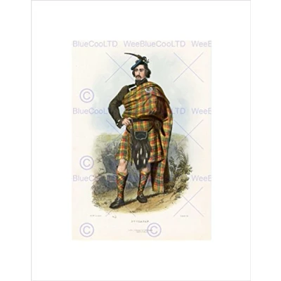 Wee Blue Coo Painting Portrait Highland Clan Scotland Tartan Buchanan Wall Art Print