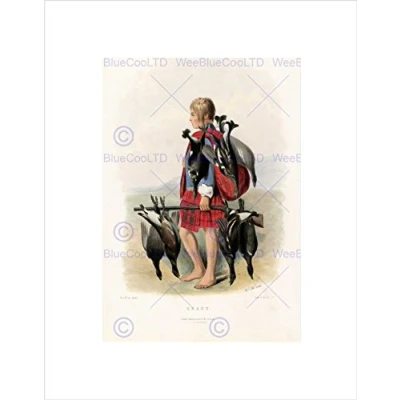 Wee Blue Coo Painting Portrait Highland Clan Scotland Tartan Grant Wall Art Print