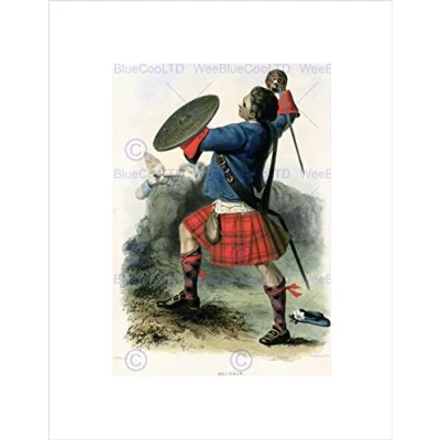 Wee Blue Coo Painting Portrait Highland Clan Scotland Tartan Macbain Wall Art Print