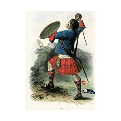 Wee Blue Coo Painting Portrait Highland Clan Scotland Tartan Macbain Wall Art Print