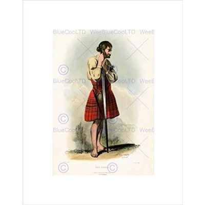 Wee Blue Coo Painting Portrait Highland Clan Scotland Tartan Macdougal Wall Art Print