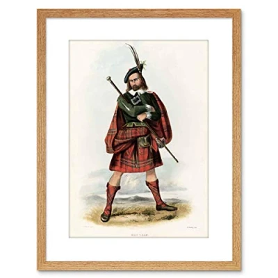 Wee Blue Coo PAINTING PORTRAIT HIGHLAND CLAN SCOTLAND TARTAN MACLEAN FRAMED PRINT F97X4939